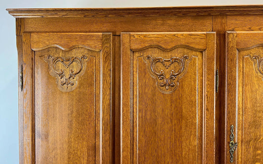 Vintage French Oak Wardrobe Armoire 5 Door Louis XV Style Carved Solid Wood Closet Cupboard Bedroom Storage LOT 4145