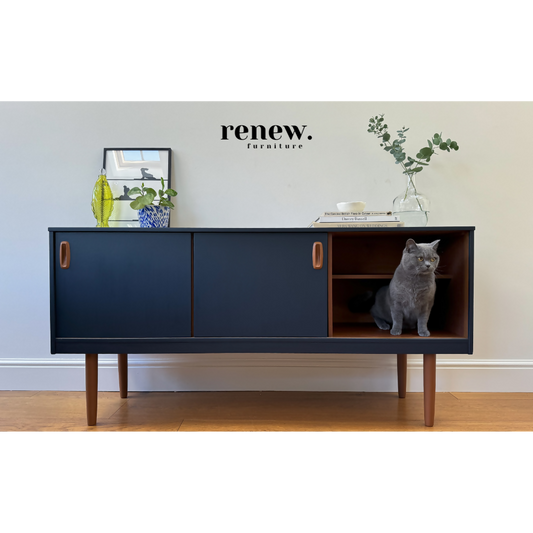 SOLD BUT CUSTOM ORDERS AVAILBLE. Mid Century Schreiber Sideboard in Navy