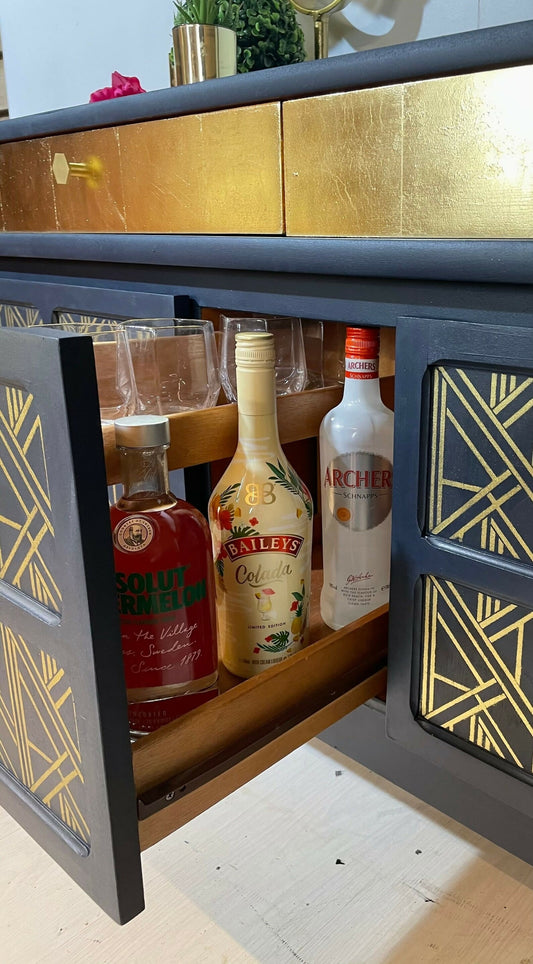 Nathan Sideboard, Cocktail Cabinet in Black and Gold