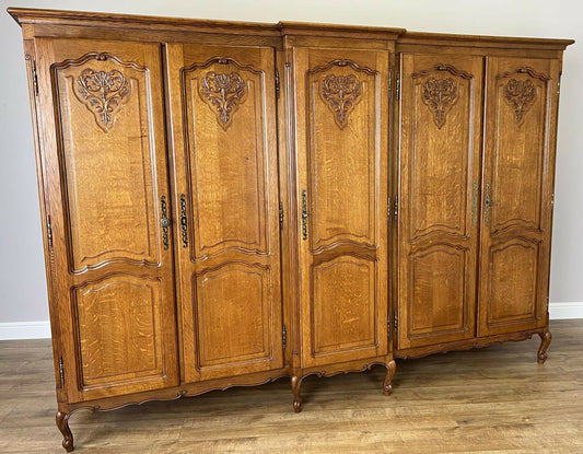 Wardrobe Vintage French Louis XVI Style Five Door Oak Carved Armoire LOT 4986