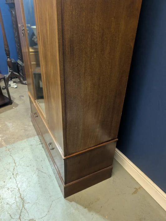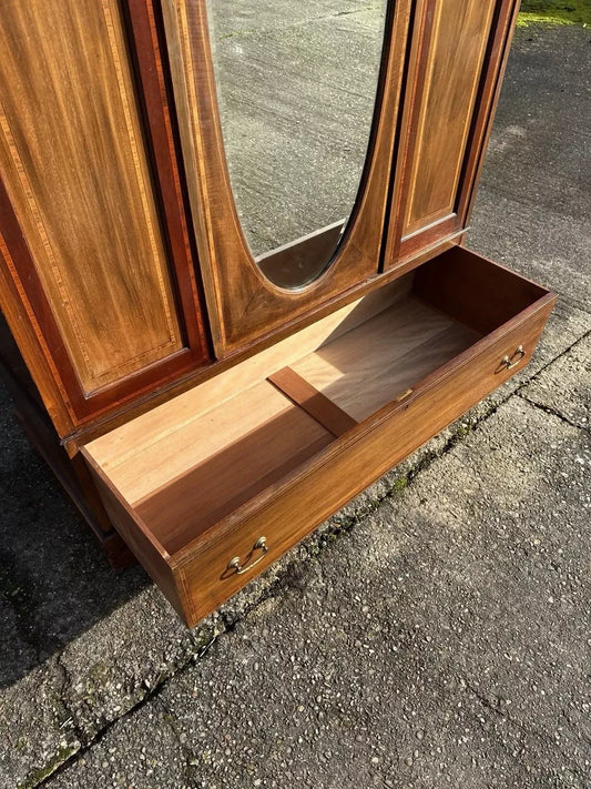 Antique Edwardian Mahogany Inlaid Mirrored Wardrobe With Drawer