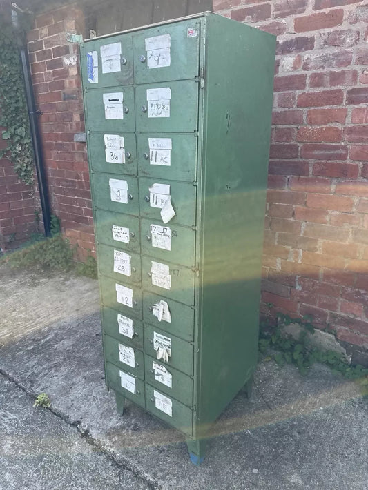 Mid Century Industrial Pigeon Hole Bank Locker Vintage Retro Green Metal Cabinet