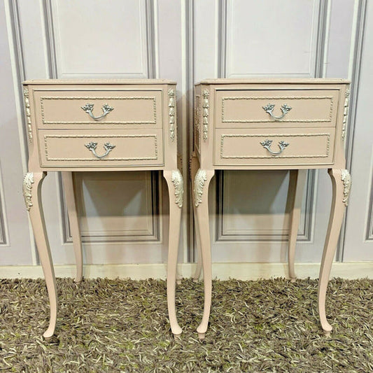 Painted Bedside Tables Pair Olympus Furniture French Louise Style Bedside Cabinets Pink