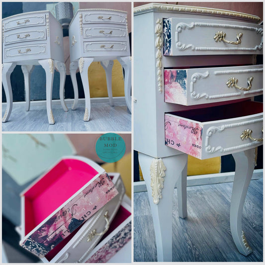 Louis style bedside tables 3 drawers| French style nightstands| Bedside tables