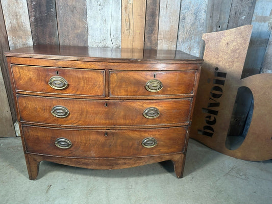 Vintage Georgian Bowfront Two over Two Chest of Drawers, c 1820
