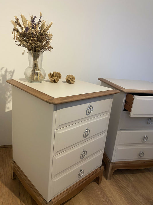 Newly refurbished pair of bedside drawers solid wood cabinets tables nightstands