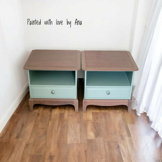 Profesionally Sprayed 2 X Green Stag Minstrel 4 Drawer Bedside Tables (pair)