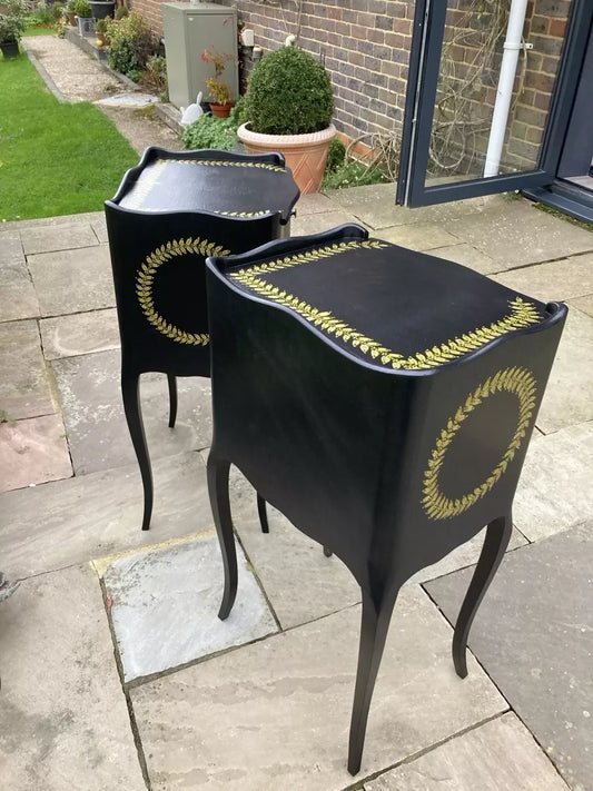 Vintage French Bedside Tables Pair Nightstands Cabinets