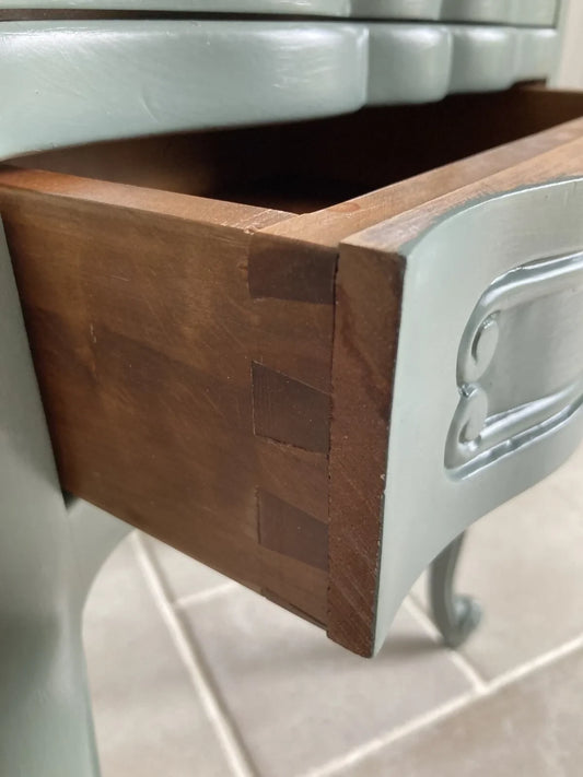 Made To Order Neutral vintage Bombe Bedside tables, nude nightstands, taupe, dusky pink, French, chic, oak, serpentine