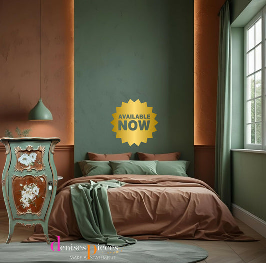 Set of French Style bedside Cabinets n Sage Green and Terecotta