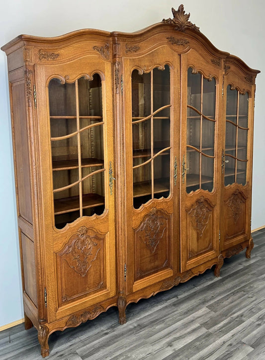 Bookcase Vintage French Louis XIV Style Display Oak Cabinet Sideboard LOT 4785