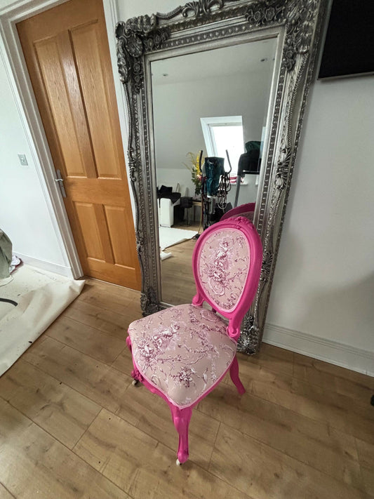 Vintage Pink Statement Chair, Upholstered Accent Chair in Toile Fabric