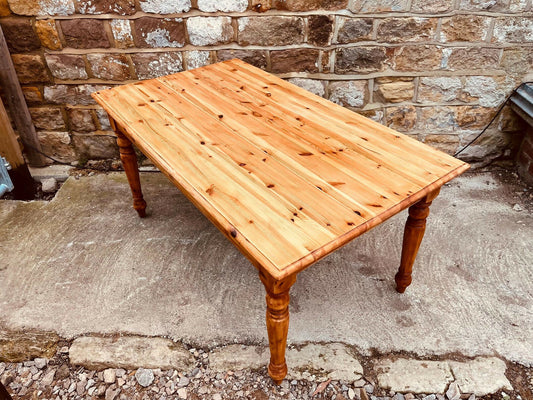 Rustic Pine Farmhouse Dining Table • Turned Legs • Seats 6 • Country Cottage Kitchen Table • Solid Wood Farmhouse Table • Restored Vintage