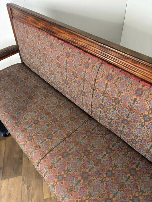 Very Large Vintage Mahogany Upholstered Bench