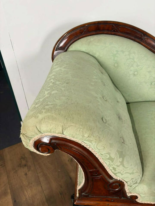 Edwardian Mahogany Framed Chaise Longue with Green Upholstery