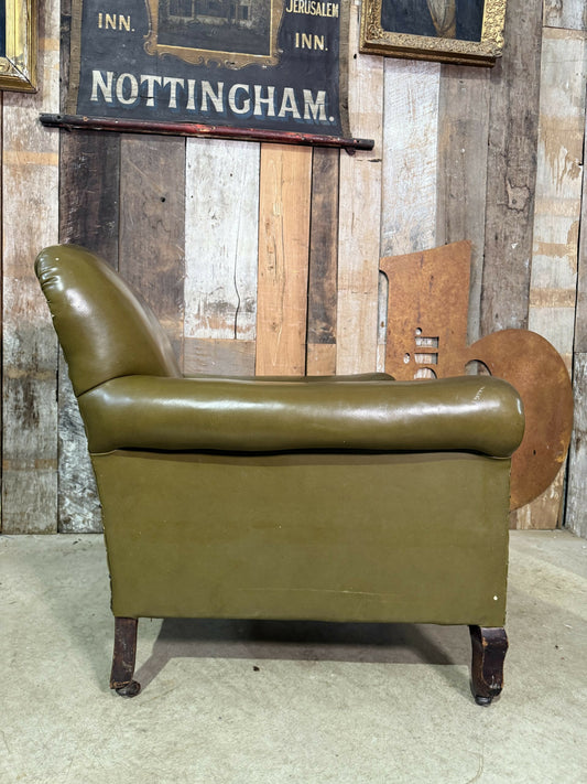 Vintage Edwardian Green Leather Armchair, c.1930