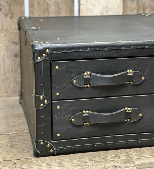 XL Black Leather 2 Drawer Coffee Table, End Table