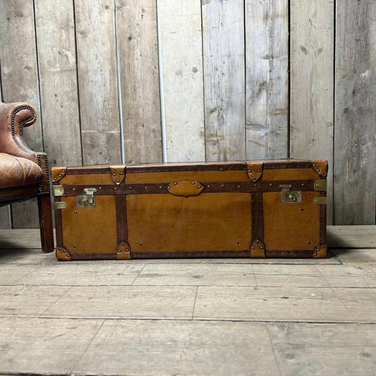 XL Tan Leather English Coffee Table Trunk