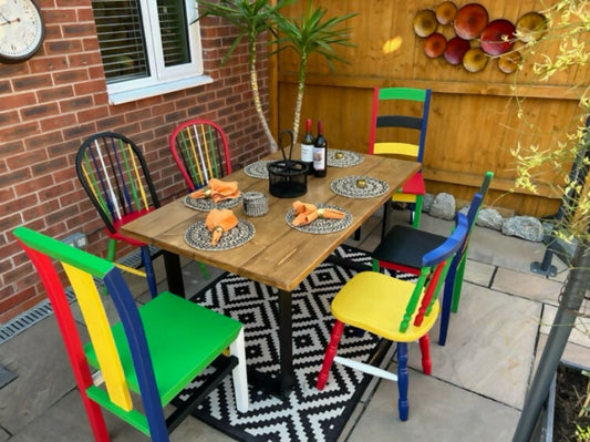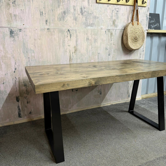 Modern Solid Wood Dining Table Industrial Trapezium Legs Seats 6 Warehouse Loft