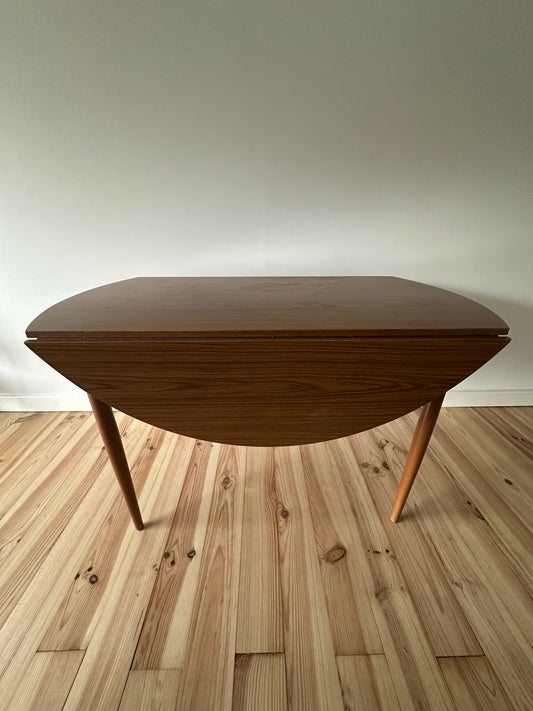 Vintage Mid Century Teak Drop Leaf Table Formica Circular Dining Table