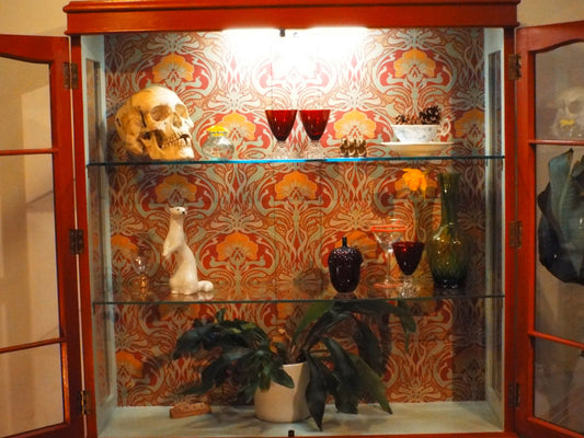 Bespoke Glass Door Display Cabinet With Turquoise Crane Bird Design
