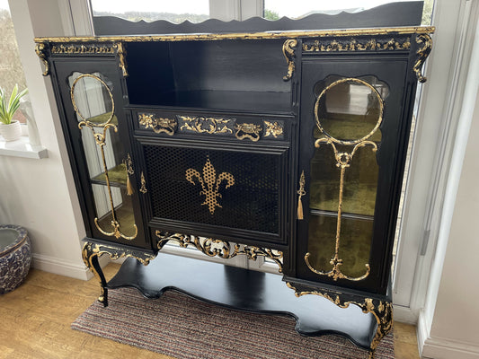 Edwardian Dresser, sideboard, display cabinet, cocktail cabinet. Renovated, gilded. Antique sideboard, Show stopping buffet.