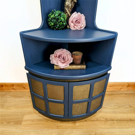 NATHAN CORNER UNIT, cocktail cabinet, Nathan Teak Squares, dark blue & bronze, retro display, mid-century storage, 1970s vintage furniture