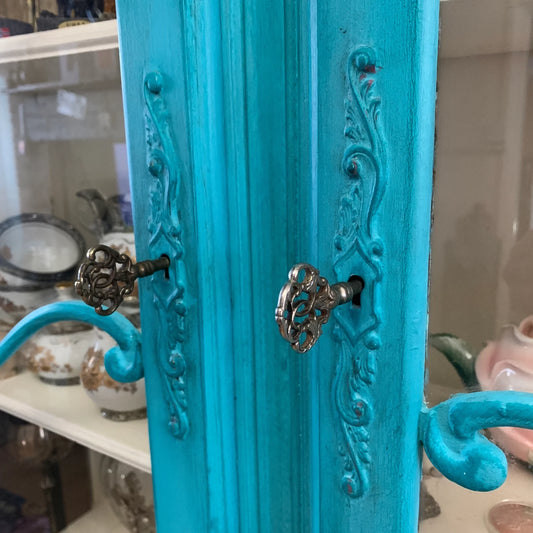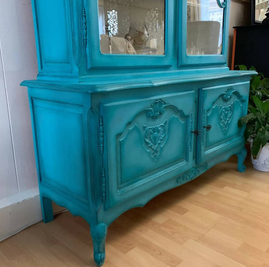 French Antique Display Cabinet Turquoise Colour Ornate Solid Oak
