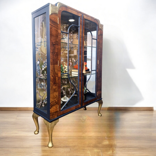 Luxury vintage display cabinet with tropical pattern touch of gold