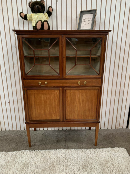 Display cabinet with glass doors raised on square tapering legs Edwardian Style.
