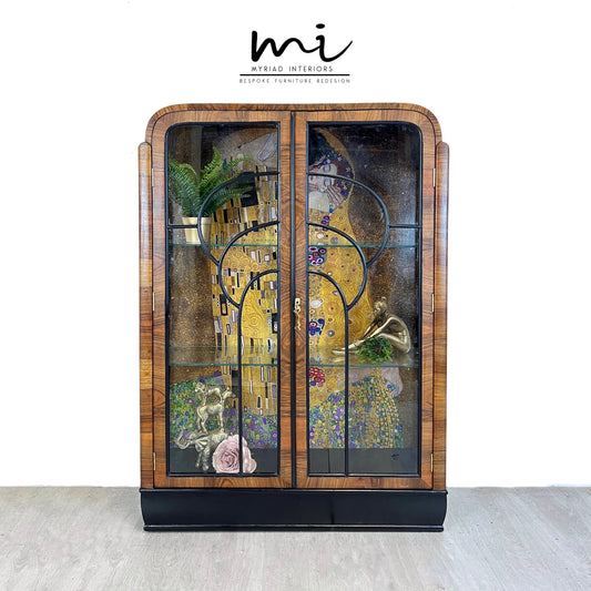 Made To Order Art deco display cabinet, Gustav Klimt The Kiss, vintage sideboard, glass cocktail cabinet, drinks cabinet