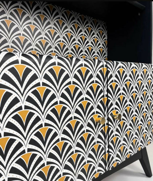 Refurbished vintage cocktail cabinet, black gold chevron, drinks bar, gin, upcycled bureau, sideboard display - commissions available