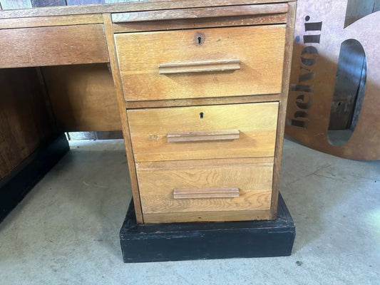Vintage Oak Art Deco Twin Pedestal Office Study Desk, c 1930