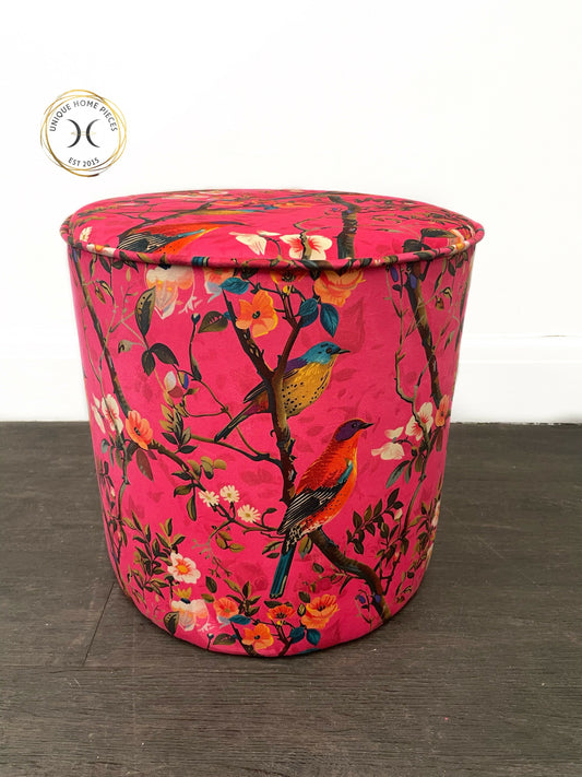 Hot Pink Bird Bespoke Handmade Drum Stool/Dressing Table Stool
