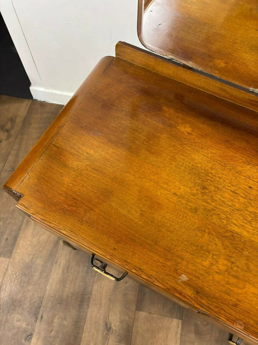 Art Deco Style Vintage Oak Dressing Table with Mirror