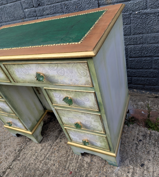 Green and gold secretary desk, bureau, desk
