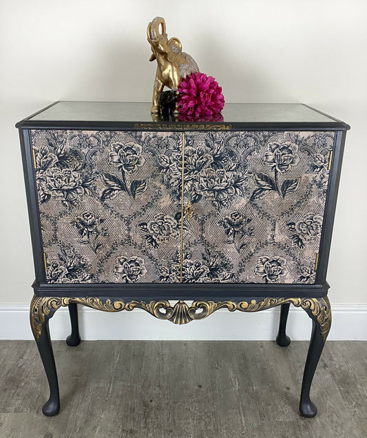 Cocktail cabinet in a beautiful combination of grey and dusty pink. Sold, commission available.