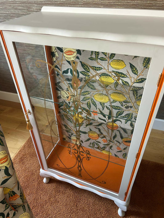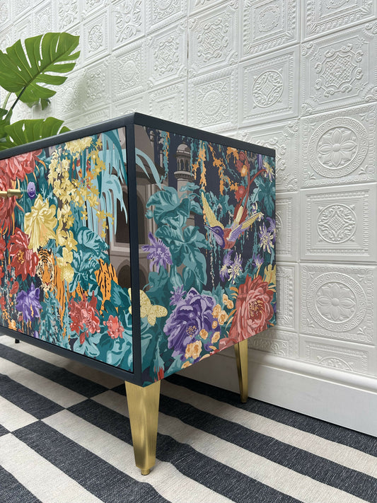 Matthew Williamson Mughal Garden Vintage Mid-Century / Refinished G Plan Fresco Small Sideboard Vinyl Cabinet TV Stand / Statement Furniture