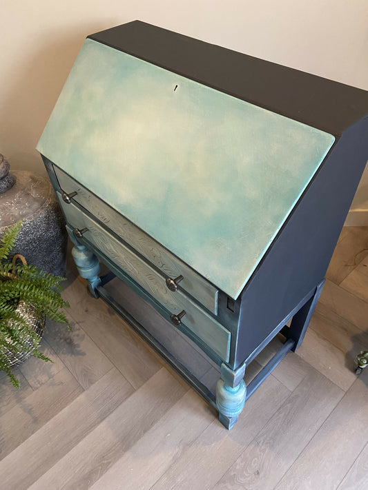 Vintage Teal Cocktail Drinks Gin Cabinet Bright Colourful Storage Cupboard Refurbished One of Kind Unique Hand Painted Furniture TV Console