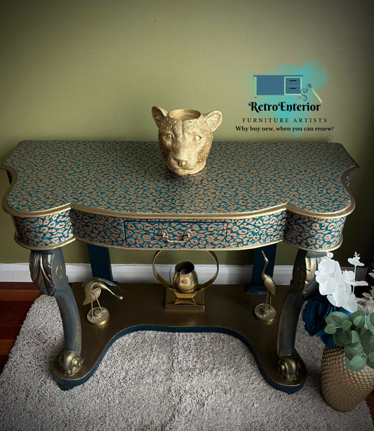 Black Vintage Desk/Dressing Table with Scalloped Design