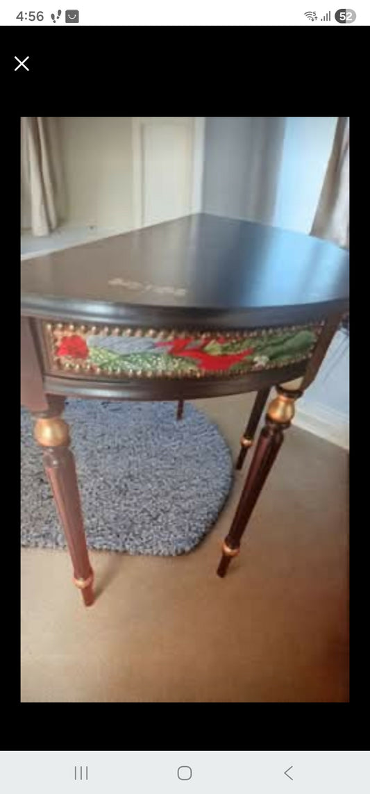 Vintage Stag Minstrel Dressing Table, Desk Dark Wood and Green Blue. Painted Upcycled Furniture