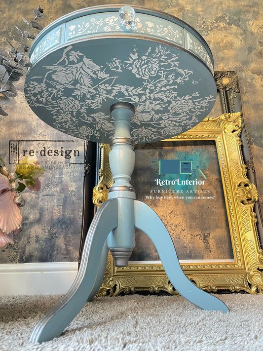 Vintage Round Side Table | Upcycled End Table in Light Blue with Whimsical Floral & Bird Decoupage | Eco-Friendly Painted Accent Table