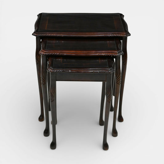 Tall Nest Of Tables Queen Anne Cabriole Legs Glass Tops FREE UK* Delivery. SBR11060/2010E