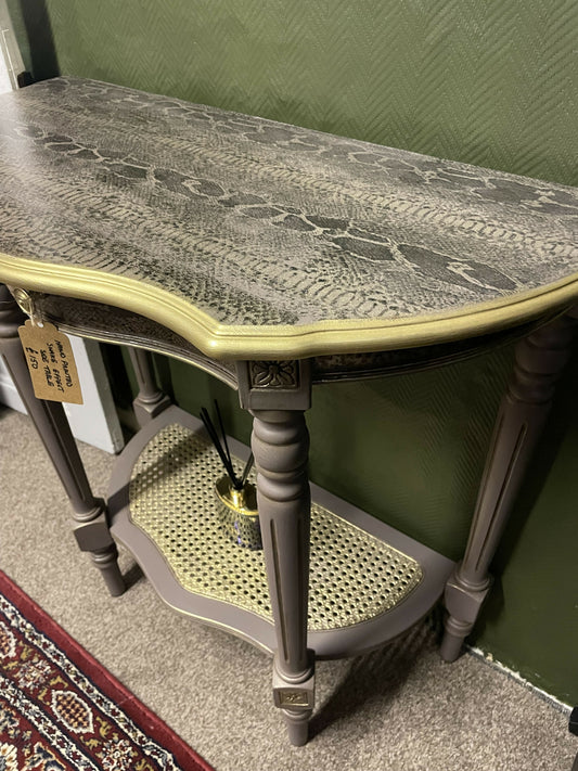 Small half round side table with animal print effect