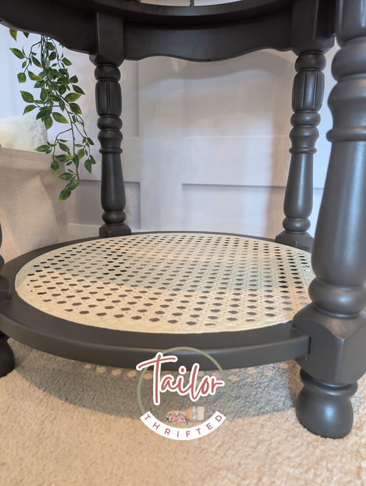 Upcycled black and cream vintage cane and glass side table / lamp table - GREEN NOVEMBER SALE, NOT BLACK FRIDAY!