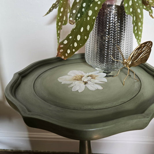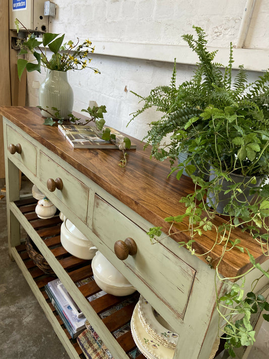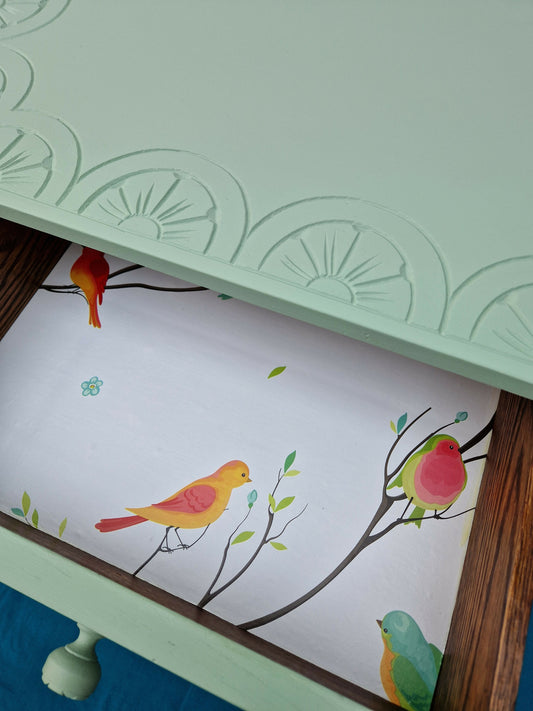 Hand Painted Pale Green Table, Upcycled Carved Console Table With Drawer