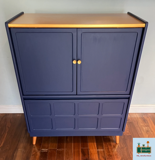 Blue Teal and Peacock Nathan mid century Cocktail Cabinet and Drinks Cabinet