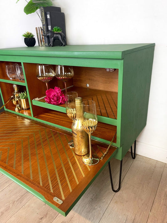 Made to Order Refurbished mid century modern Nathan large sideboard set, drinks cabinet, TV stand, media unit, sage green, decoupaged, cocktail, console