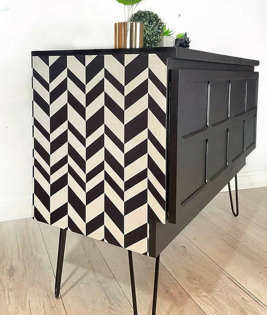 MADE TO ORDER - Navy Blue Squares Sideboard Gold Hairpin legs, woven design, MCM Storage