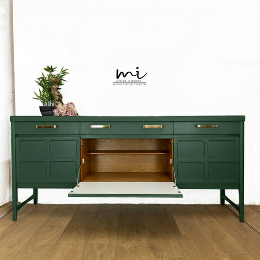 Large Vintage Nathan Sideboard in deep forest Green, mid century drink cabinet, TV stand, media unit